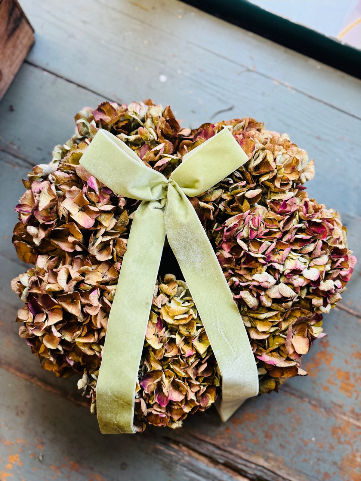 Our handmade dried hydrangea wreath is crafted using carefully preserved hydrangea blooms, chosen for their soft texture, natural tones, and lasting beauty.